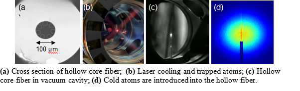 Hollow-core optical fiber has a hollow structure, which can guide laser and matter at the same time, achieving efficient light-matter interaction. Cold atom quantum inertial sensing based on hollow-core optical fibers uses hollow-core optical fibers to guide far-detuned light fields to generate optical dipole potential wells, confining cold atoms in a hollow fiber core of tens of microns, and can construct a quasi-one-dimensional light-guided cold atom interferometer achieves ultra-high sensitivity measurement of inertial quantities. The research team conducts research on the decoherence mechanism of light-guided cold atom interferometers, atom cooling in hollow-core optical fibers, coherent manipulation and detection technology, and is expected to realize a high-precision, vector, and miniaturized light-guided cold atom gravimeter and accelerometer.