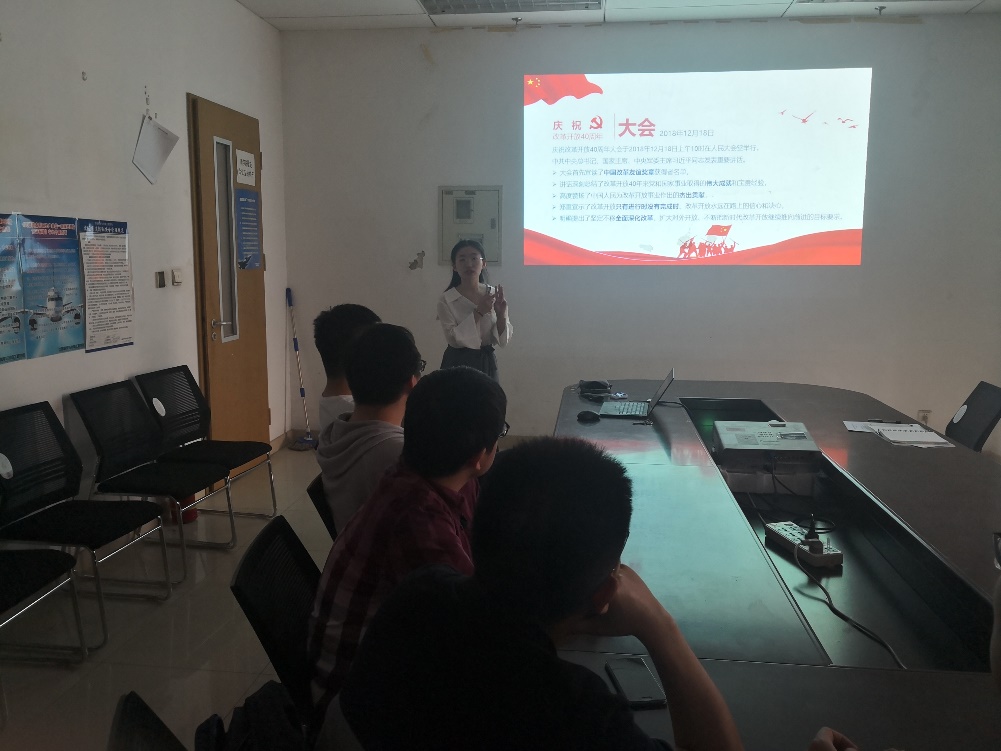 范鹏程同志分享了自己的心得体会:通过这次支部学习,我详细了解了改革开放40年来中国社会各阶层的变化。以第十一届三中全会作为开端,王舒同志以一个个鲜活的故事讲述了我国为什么要进行改革开放,改革开放的具体措施与实施,以及改革开放各时期我国各阶层的发展状态成果,生动形象地展示了我国三大里程碑之一的改革开放的壮丽画卷。邵亦博同志对此次活动也发表了自己的看法:此次宣讲不仅丰富了我们对党的认识,还加强了我们对经济变化的理解。由浅入深的讲解了改革开放以来,国家的经济形势变化和变革。