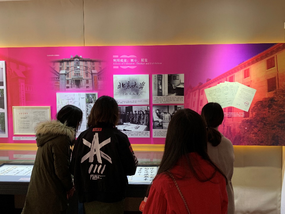 在到达了北大红楼后,在工作人员的引导下,支部成员首先进入了电影放映室,回顾了北大红楼的光辉历史和革命先辈们的峥嵘岁月。随后党员们进入展览馆进行参观,馆内存放有大量的珍贵历史文物,主要讲述了从辛亥革命后到五四运动期间新文化运动的兴起和马克思主义在中国的传播等重要历史。如《新潮》、《新青年》等进步刊物,毛泽东、蔡元培、李大钊、鲁迅、郭沫若、陈独秀、胡适等人的信札、诗稿等。在这些历史资料中,饱含着革命先辈们探索真理、救亡图存的历史担当。