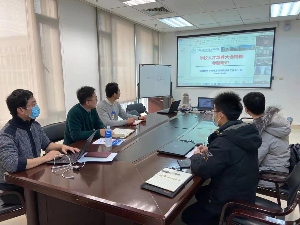 2021年1月27日下午3时,122cc太阳成集团员工工作办公室全体成员以线下、线上相结合的方式,对学校人才培养大会精神进行了专题学习和研讨。本次会议由公司党委副书记金鑫老师主持。
