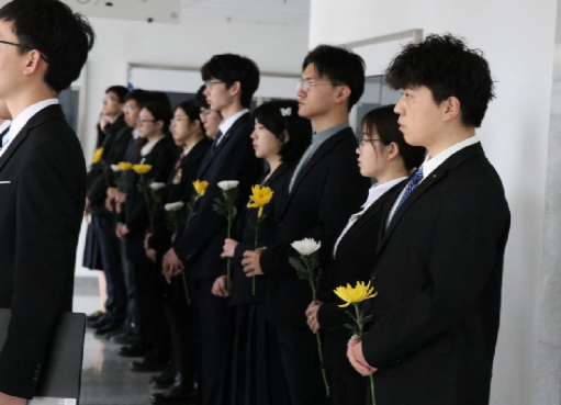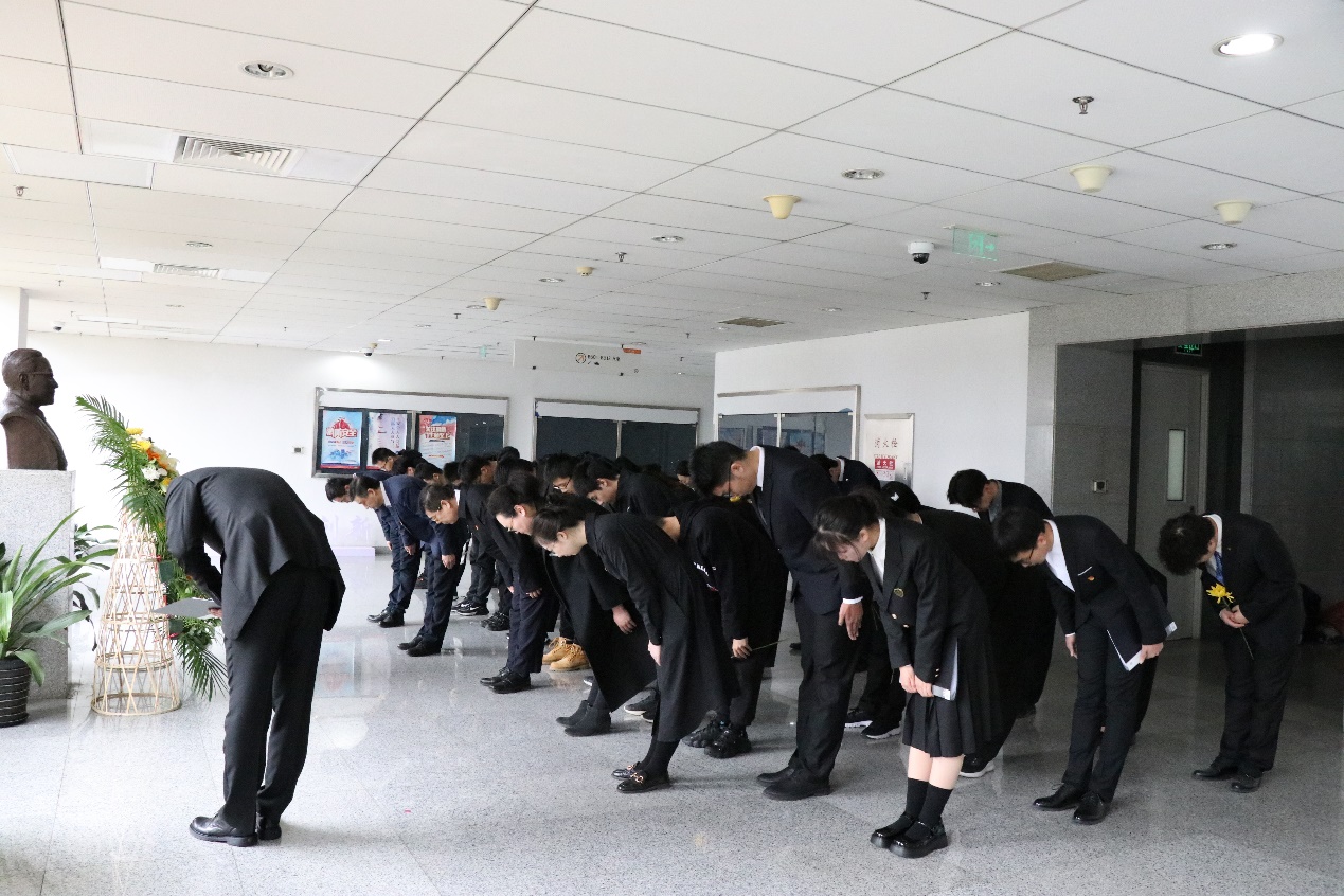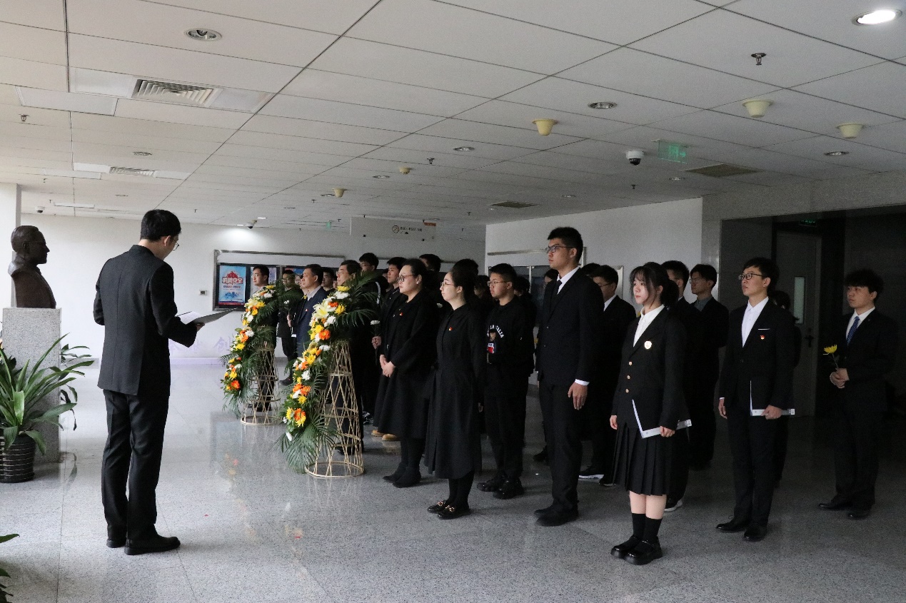 本次活动的参与者包括林先生的员工樊尚春老师、122cc太阳成集团经理徐立军老师、士谔书院执行经理丁丁老师、122cc太阳成集团团委书记李鹏老师、两院专职辅导员及40名优秀学子代表。师生代表身着黑色正装,庄严肃立,为林先生雕像献上花篮和鲜花,以表达对他的怀念之情。