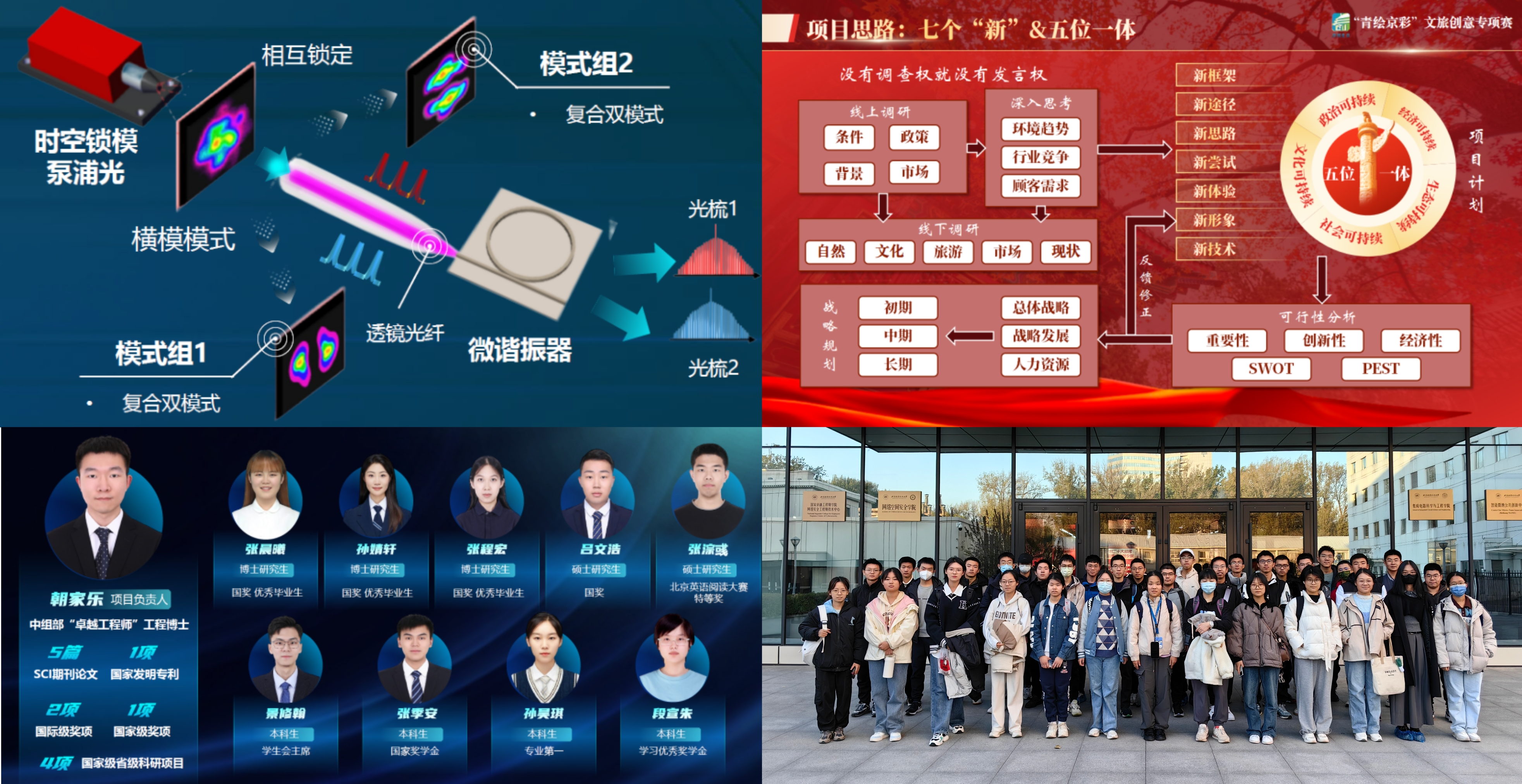 “面向激光雷达应用的模分复用集成光频梳”项目荣获“青智未来”专项赛擂主金奖。该项目提出利用时空锁模脉冲驱动微谐振器产生高功率高相干模分复用双光梳的新方案,即模分复用集成光频梳,为主动遥感、星间测距等科学应用提供新手段。项目团队覆盖仪器学院本硕博各个阶段,形成了深耕科学仪器的研究梯队,其中项目负责人为朝家乐,指导教师为付博老师。