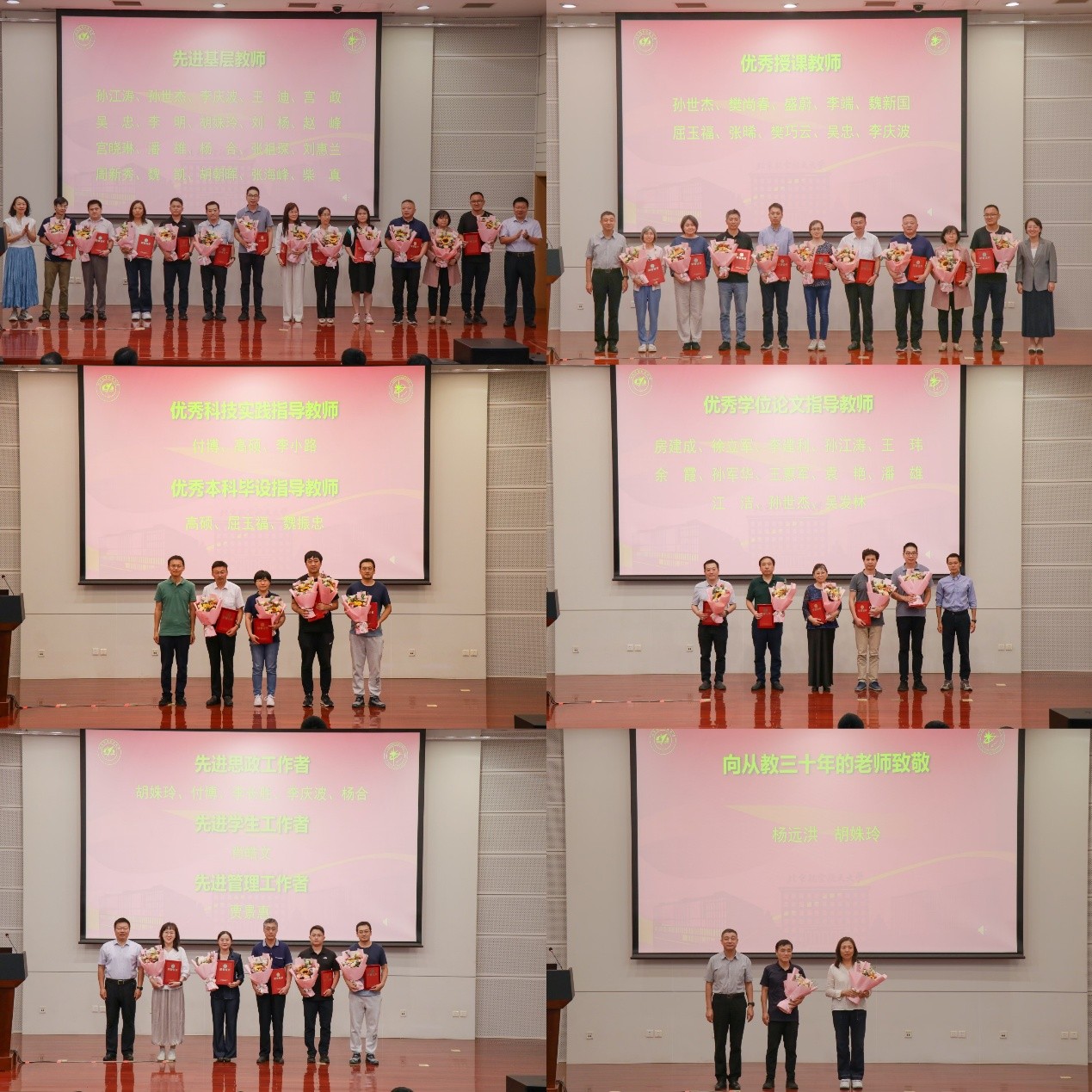 为了深入学习贯彻全国教育大会精神,大力弘扬教育家精神,激发学院全体教职员工牢记为党育人、为国育才的初心使命,积极投身加快建设教育强国的时代使命,学院对过去一个学年在公司产品、思政以及管理服务等方面表现突出的教师进行表彰,与会领导嘉宾为获奖老师颁发荣誉证书并献花。大会还对学院荣休和从教三十周年的老师表达了敬意!