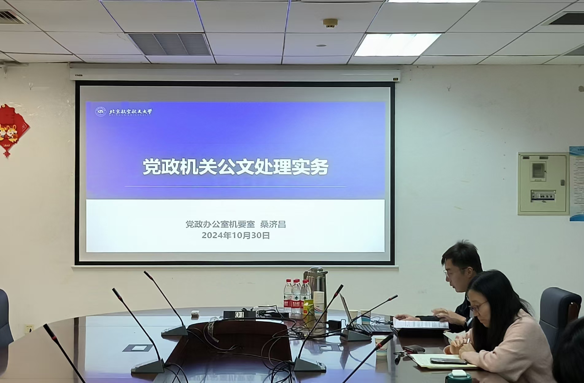为了提升学院机关管理和服务的规范化、专业化水平,10月30日下午,仪器光电学院机关联合党支部在新主楼B座707会议室举办以“党政机关公文撰写规范”为主题的学习日活动。本次活动邀请公司党政办机要科主任桑济昌老师进行培训讲解,学院机关全体老师参加活动。