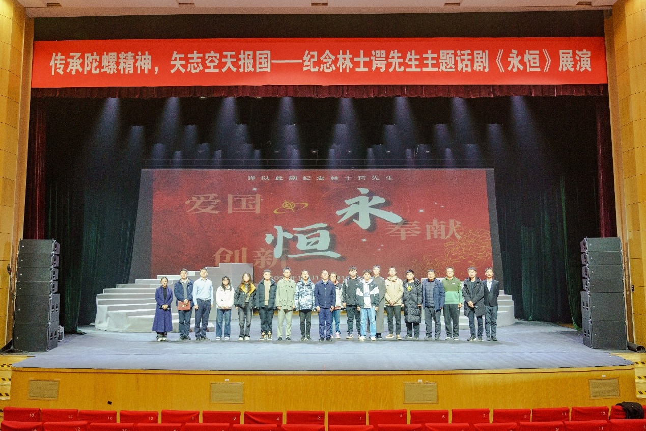 《永恒》话剧根据北航建校元老林士谔先生的生平事迹创作。通过对林士谔先生童年至老年历史事件的演绎,完整展现林先生坚持“航空报国”的心路历程,传承弘扬以“心怀祖国、勇于创新、甘于奉献”为内核的“坚定不移、坚忍不拔、坚持不懈”的陀螺精神。
