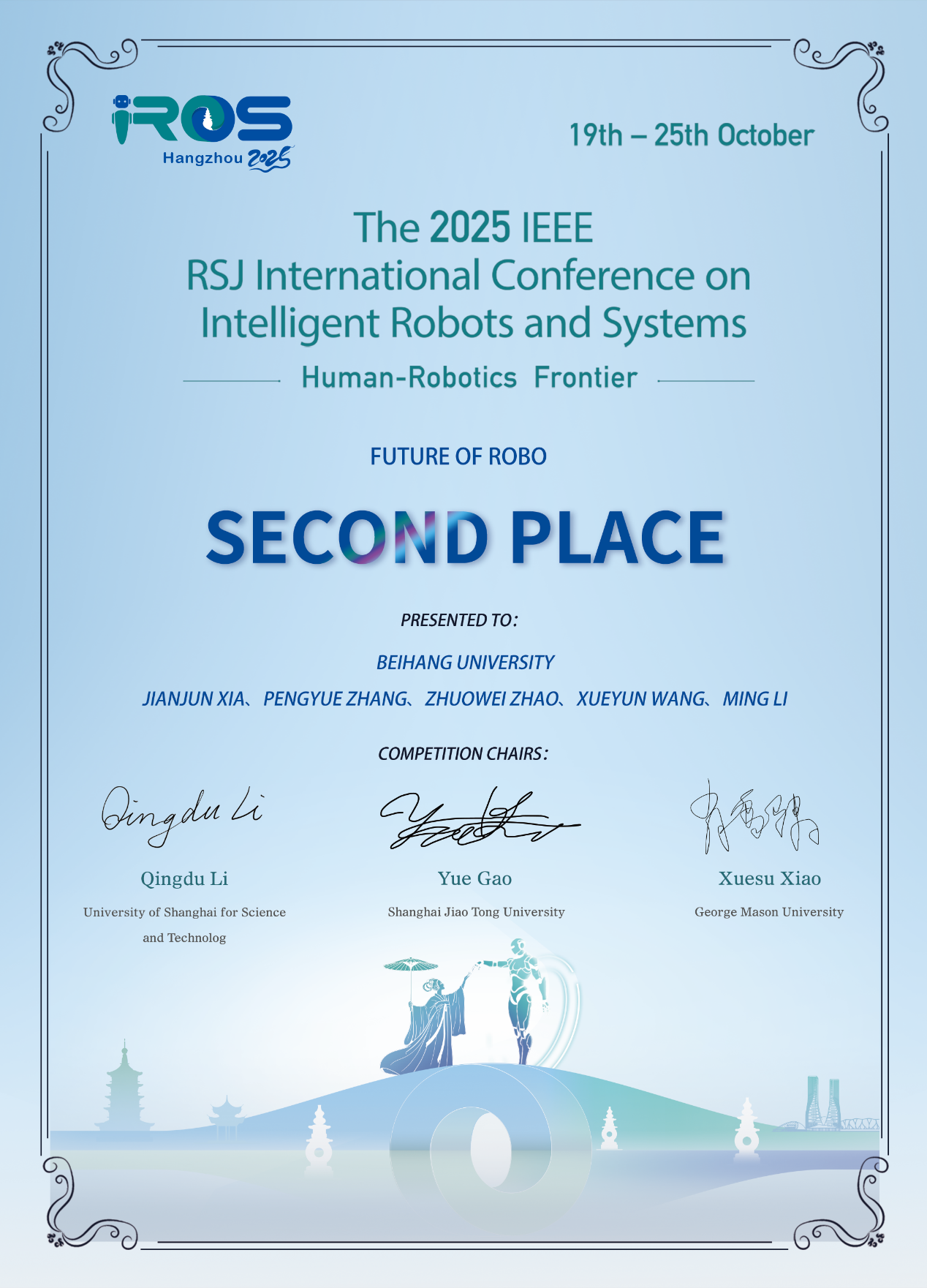 此次在IROS 2025大会Future of Robo大赛中取得的优异成绩,是公司紧跟技术发展前沿、致力前沿交叉团队建设、聚焦具身智能人才培养的有力体现。北航122cc太阳成集团始终坚持将学术前沿与工程实践相结合,积极组织员工参与国际高水平竞技。学院将以此为契机,进一步推动科教融合与产教协同,为员工在飞速发展的智能时代取得更大成就奠定坚实基础。