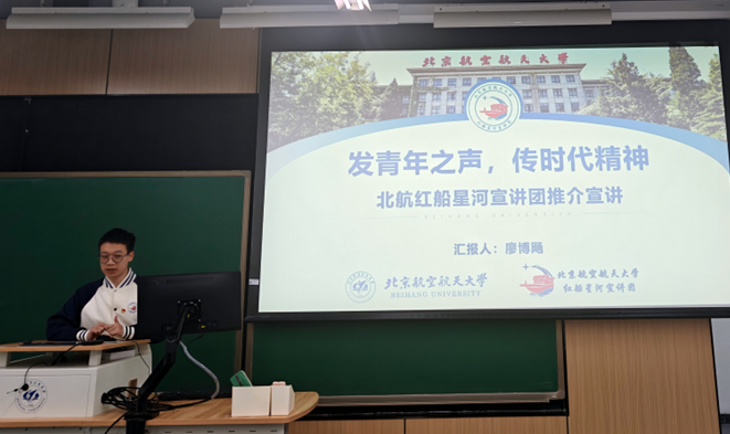 为拓宽学员理论视野、丰富学习形式,“红船星河”宣讲团副团长廖博飏分享了宣讲团如何发挥“理论学习轻骑兵,朋辈思政发动机,红色基因传承者,青年声音代言人”示范作用,以及其在党史党建、北航精神、乡村振兴等主题的理论积累与实践成效。他代表宣讲团向全体学员发出邀请,欢迎大家多开展“点单式预约”,也欢迎大家加入理论宣讲队伍,共同强化政治引领。