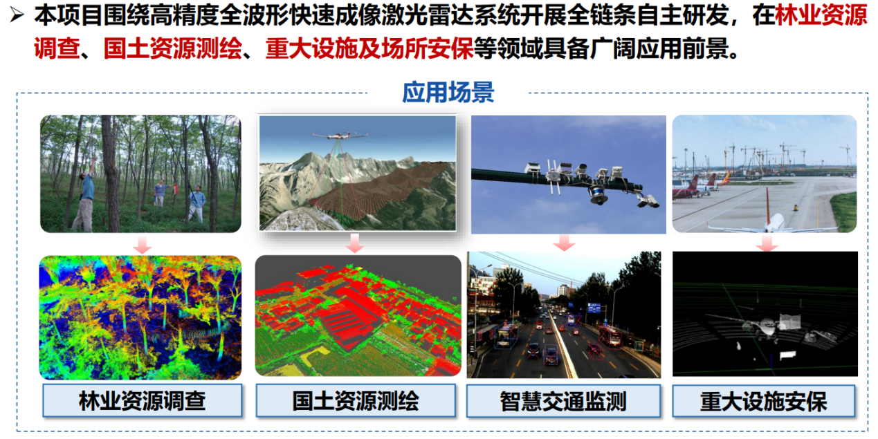 项目简介:项目致力于研发一套高精度全波形快速成像激光雷达系统,通过完整记录并实时处理激光回波的全波形信息,实现了对探测目标的高分辨率三维重建。系统采用新型棱镜-振镜扫描结构,在光学设计与机构控制方面实现重要突破。项目先后攻克了同轴共孔径光学收发、双轴扫描机构驱动与高精度指向角获取、复杂回波信号在线测距、三维点云实时解算等多项关键技术,并完成了系统集成、标定与测试。最终研制的激光雷达系统具备毫米级测距精度与高速成像能力,在测绘、工业检测、无人系统环境感知等领域具有重要的工程应用价值。