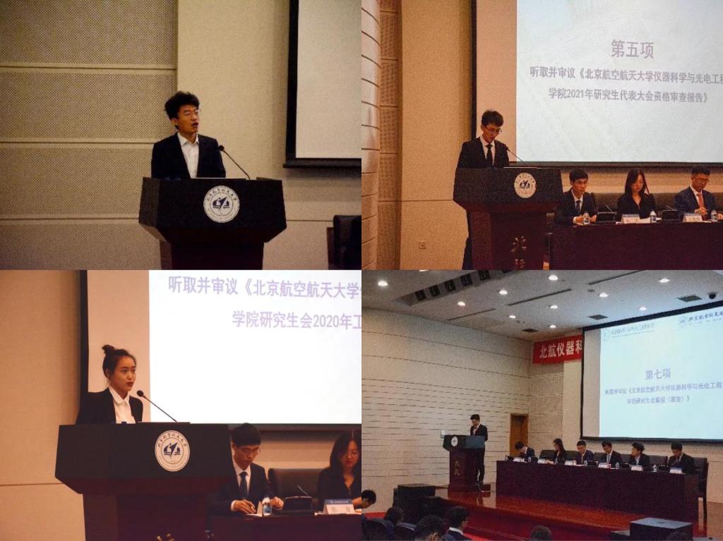校研究生会代表杨培棣代表校研会向大会致辞,充分肯定了公司研会在过去一年中取得的突出成绩,并表达了对公司研会改革发展的良好祝愿。大会审议并通过了《北航仪器学院2021年研究生代表大会资格审查报告》《北航仪器学院研究生会2020年工作报告》《北航仪器学院研究生会章程(草案)》《北航仪器学院2021年研究生代表大会提案工作报告》。