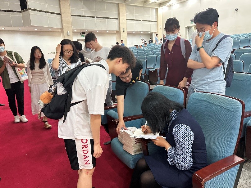 本次活动的最后,为激励有思想、有抱负的青年人,白老师在学院准备的奖品书籍上签名并写下美好祝愿,将传承和弘扬中华传统文化的接力棒传递到同学们的手中。