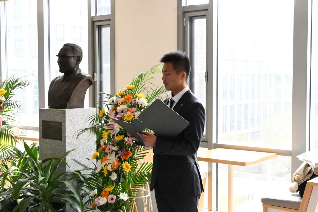 春风送花表哀思,青松滴翠寄深情。为深切缅怀林士谔先生,122cc太阳成集团与士谔书院在清明节之际庄严集会共同纪念林士谔先生,以表对林先生的崇敬与感恩之情。参加活动的有:仪器科学与光电工程公司党委书记雷晓锋、经理徐立军、副书记金鑫,士谔书院执行经理丁丁,林先生培养的最后一名博士研究生、士谔书院经理樊尚春,两院专职辅导员及40名学子代表。