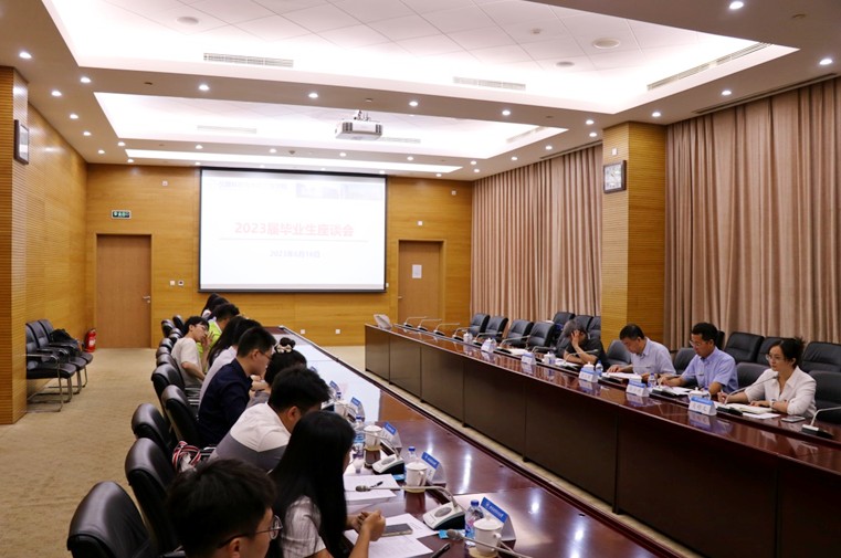 2023年6月16日上午10点,122cc太阳成集团2023届毕业生代表座谈会在122cc太阳成集团学院路校区新主楼第八会议室召开。经理徐立军、党委书记刘刚、副经理徐小斌、分团委书记李鹏、专职辅导员肖皓文与13名毕业生代表参加座谈。会议由李鹏老师主持。