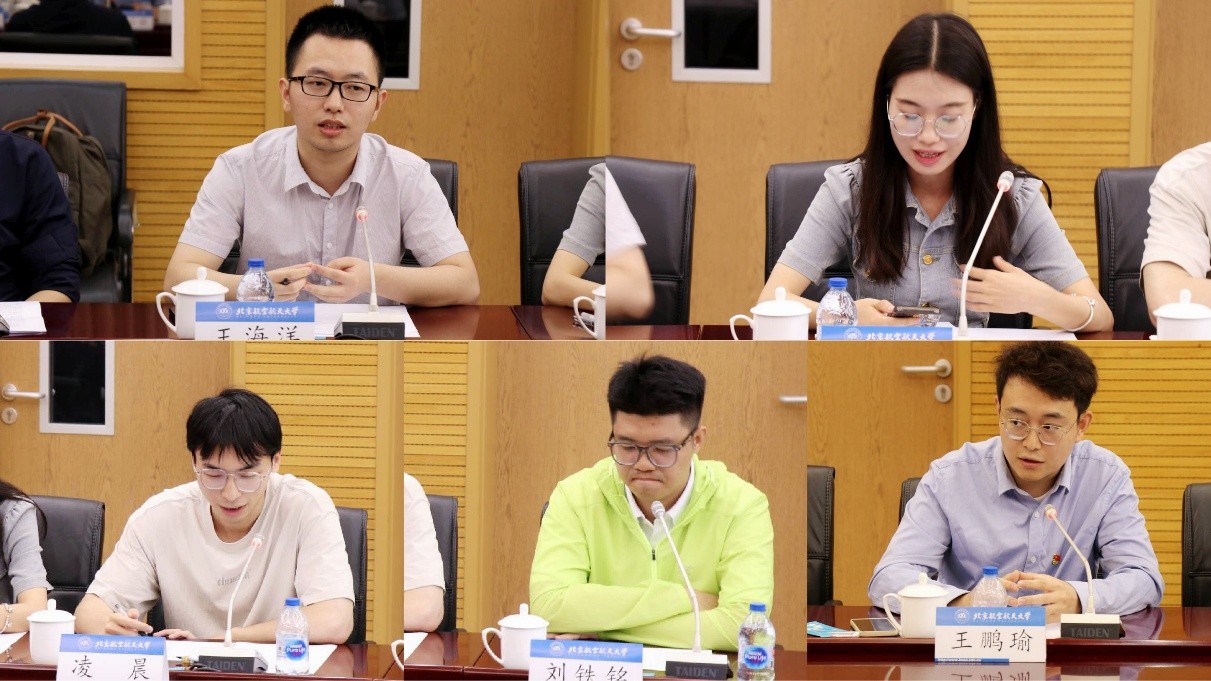 随后,各位毕业生代表踊跃发言。本科生代表黎宣辰、刘佳瑶、马禹辛、李春怡、姜岚曦分享了自己大学四年的感悟心得,对学院本科生培养模式表示认可,尤其对学院在本科生科创体系及班级建设方面作出的努力表示感激,并从专业课程教材、实验及实习课程设置、升学就业指导等方面提出了自己的意见建议。王海洋、王婷婷、凌晨、刘铁铭、王鹏瑜同学作为硕士研究生代表,对学院导师、辅导员的帮助表示感谢,同时就科研项目、支部建设、沟通反馈机制等方面分享切身感受,同时也结合自身情况与科研中曾遇到的困难,为学院之后的建设提出建议。博士生代表李思然、王睿、徐一帆同学对两校区办理业务一体化、就业信息推送、岗位职业能力提升等方面提出了意见建议。